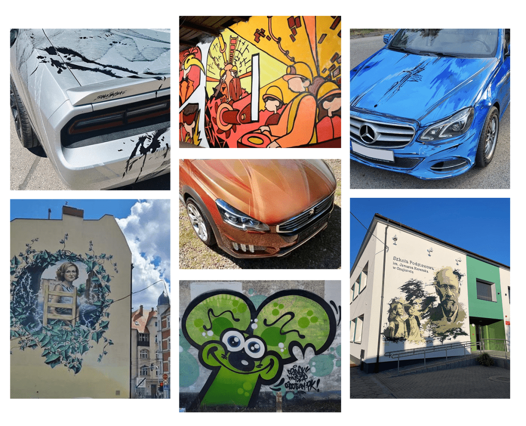 Otwieramy przed Państwem szeroki wachlarz możliwości – od indywidualnych zamówień, gdzie każda płaszczyzna jest malowana ręcznie, po widowiskowe eventy promocyjne. Franek może stworzyć autorskie dzieło na żywo, jednocześnie zmieniając proces produkcji w fascynujący performance, który przyciąga uwagę i angażuje społeczność. Kluczowym elementem naszej oferty jest absolutna unikalność: tutaj nie ma miejsca na powtarzalność czy seryjne nadruki. Każda kreska i każde chlapnięcie farby to autorska, jednostkowa praca artysty, co gwarantuje, że Państwa plac zabaw będzie jedyną taką realizacją na świecie.